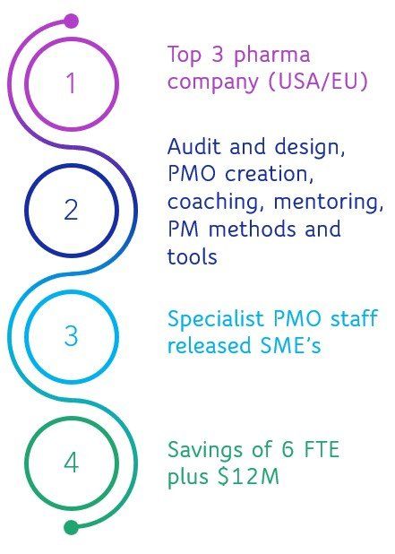 - Overall the introduction of PM meant the PMO was at least ‘cost neutral’, and the return on consulting effort was obtained many times over.